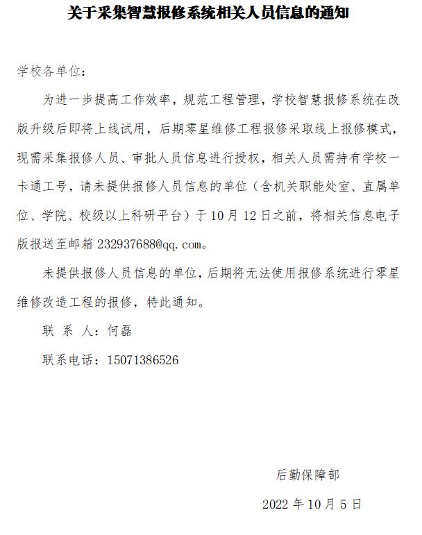 发布者:后勤集团 编辑: 发布时间:2022-10-05 浏览次数:
