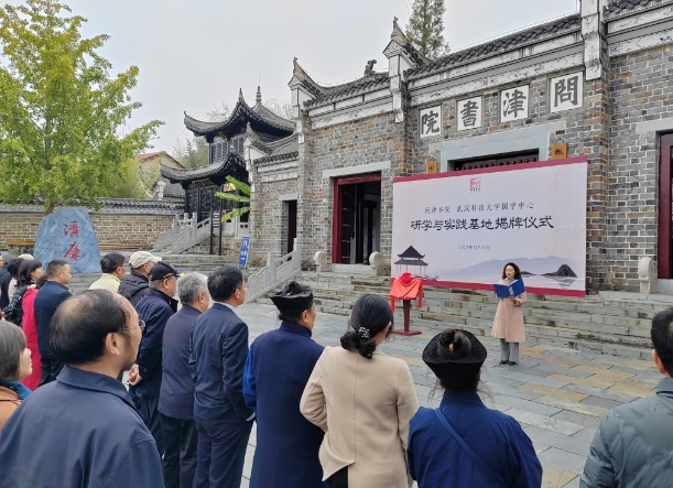 与会专家学者学考察位于武汉市新洲区的问津书院,参加武科大国学中心“研学与实践基地”揭牌仪式。