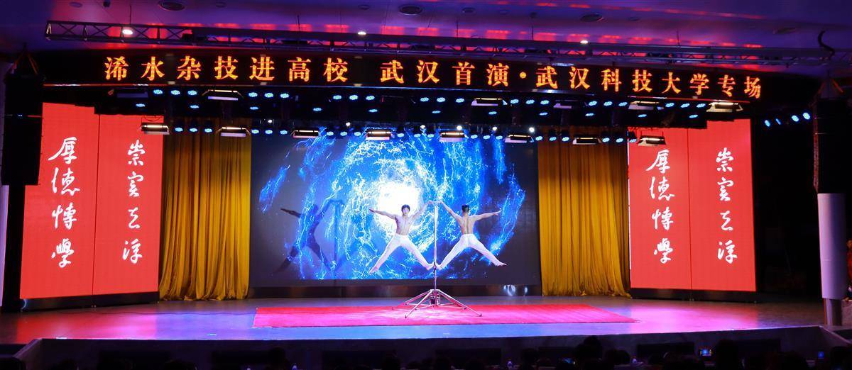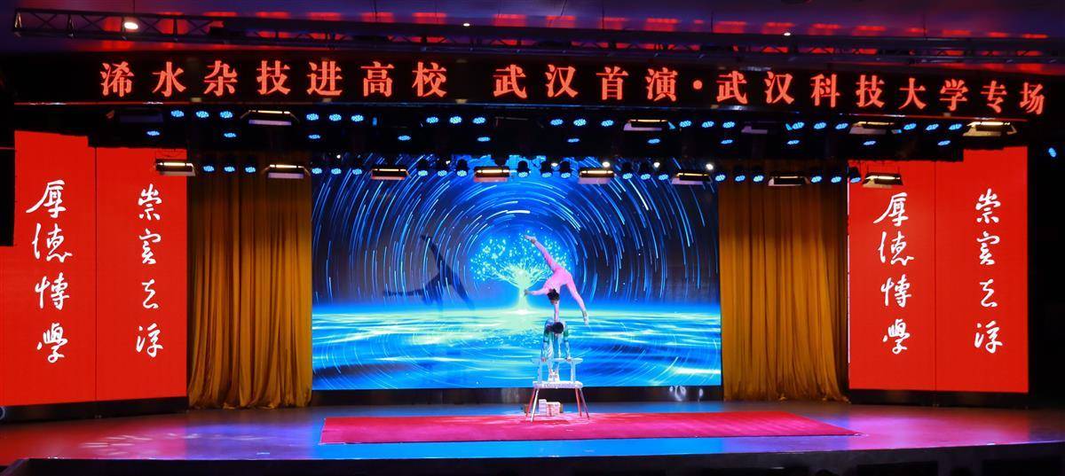 黄冈市杂技团将杂技带进高校,旨在传播浠水杂技,增强青年学生人文教育素养和美育教育素养。(摄影:江子琪 吴磊)