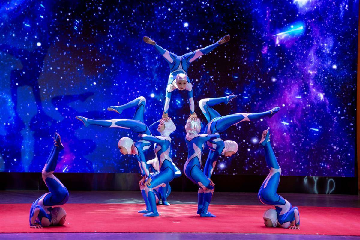 “杂技表演中高难度的动作和柔美至极的表演真的扣人心弦,精彩纷呈!”“非常震撼!”“场面绝美!”演出现场,师生们惊叹连连。