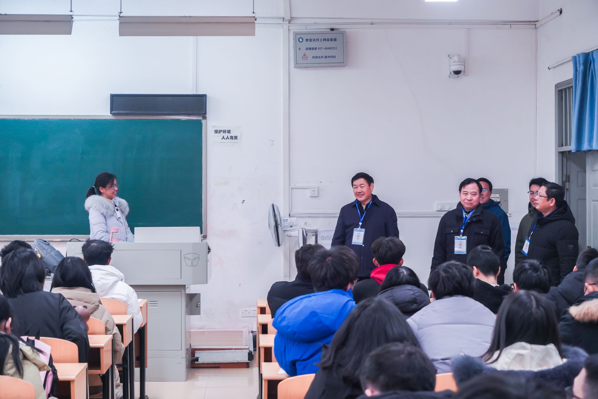 2月26日,春季学期开学第一天。必赢nn699党委书记徐雁冰、校长倪红卫等全体校领导深入教学一线,检查新学期开学第一课的教学情况,实地走访青山校区、黄家湖校区全部教学场所,巡课、看课、查课,督查教风、学风建设,指导新学期第一天教学情况,就教师到岗及授课情况、学生上课出勤情况、师生课堂精神面貌、课堂秩序、教学设施和后勤服务保障、校园安全等情况进行了全面认真的巡视检查。