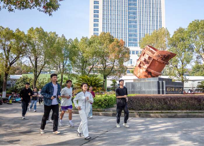每天晚自习后,工商管理类2311班学生都会在体育委员吴俊组织下夜跑,32名学生排成一条纵队,沿着校园里的沁湖绿道,一起匀速奔跑。吴俊说:“带动全班坚持绕沁湖夜跑,既让大家强身健体,又能增强班级凝聚力。”该班学生李欣欣说:“全班一起跑,大家互相鼓励,让我能坚持跑完全程。”