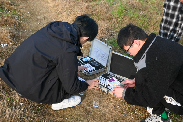 “捞取湖水、滴加试剂、比对颜色,由此初步显示出湖水的含氯量、钾钙锌镁离子含量,进而测定出湖水的硬度。”人与自然协会成员李国辉向同行人员讲述道。一路上,该协会成员在黄家湖不同区域先后测定了三次水质,记录数据后共同探讨不同水样差异化的原因,并通过历年数据的对比来分析环境的变化。