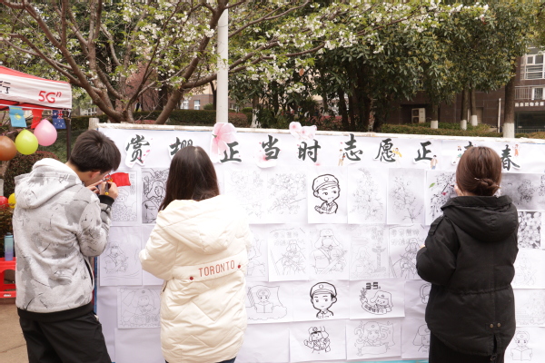 现场还设置有一处“随心画”展板,提供各类画笔与颜料,每位参与者都可以在这留下自己的创作,诠释自己心中的雷锋精神。想参与其中但画技不佳的学生也不必担忧,画卷上准备了草图,学生们可以填色,为画上的“雷锋”添上色彩。