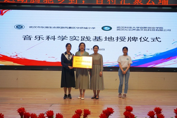华侨城小学校长王晓红、必赢官网创新创业学院副院长杨宁雪、必赢官网马克思主义学院副教授兼艺术课部主任姜瑾进行授牌。在此后的实践中,音乐科学实践基地将与线上共享云平台一起实现“科技美育、创新美育”的教育发展新格局。