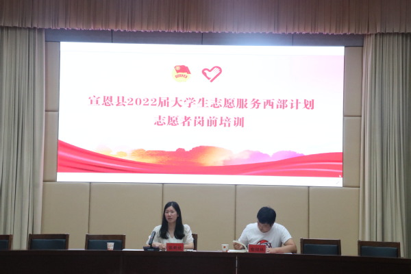 武科大网讯(通讯员刘湘涵)7月27日上午,必赢官网五名赴湖北宣恩的研究生支教团成员在宣恩县人民政府参加了宣恩县2022届大学生志愿服务西部计划志愿者岗前培训,宣恩县团委书记张新欣、喻绍林,西部计划赴宣恩志愿者参加了会议。