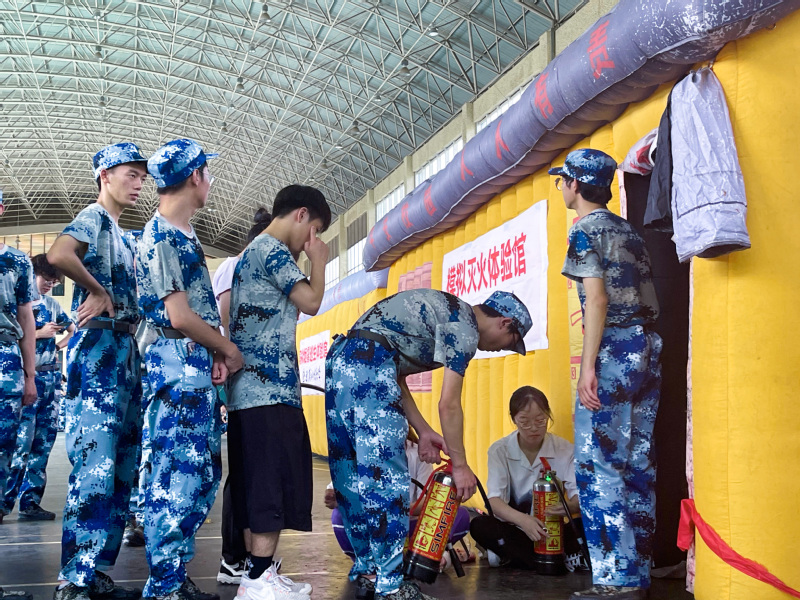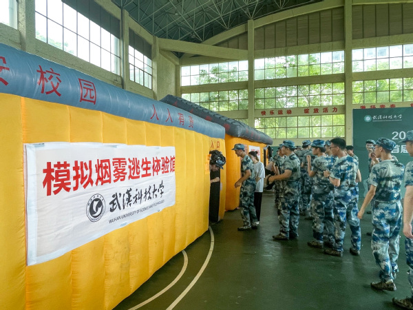 武科大网讯(记者余可多)为了加强大学生安全意识,推动全员灾害自救工作,6月27日,必赢官网学工处与军训团联合举办“模拟烟雾逃生训练和模拟灭火”实训活动,全体2021级军训学员参加。