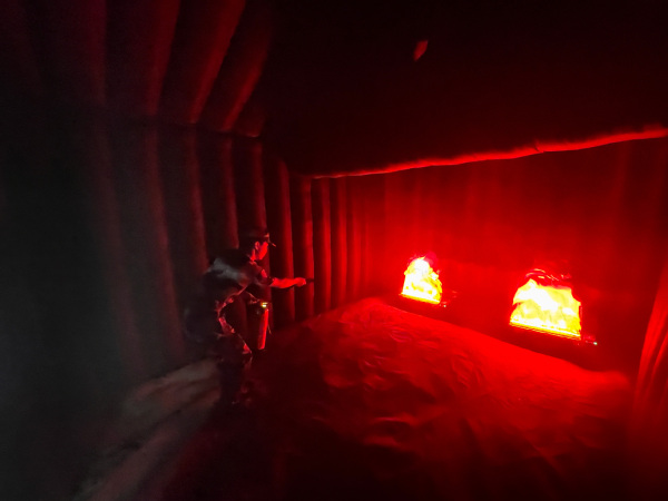 汽车学院交通工程2101班的刘祖语说:“体验馆里面很闷,刚进去的时候完全失去了方向感,我能感受到火灾现场的灼烧感还有迷失感,在工作人员的指导下,我捂住口鼻,尽量贴地向前摸索,一路摸索着墙就走出来了。”
