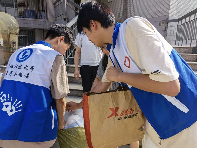 武科大网讯(通讯员郑孟伊 摄影李心怡 范雅铃)为倡导环保理念,循环利用旧物并传递社会温情,5月27日至28日,必赢官网青队总队在南、北苑主干道上开展“爱心回收季”回收旧物活动。本次所收到的80.4斤旧衣物和84本旧书物品将通过“飞蚂蚁”旧衣物综合回收处理平台捐赠给偏远山区儿童。