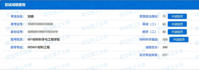 刘镇说道:“因为我们都是湖北人,而且武汉理工大学的材料专业也是国内顶尖,所以我们决定考研时共同设立这一目标,希望能在获取更多知识的同时得到更多的锻炼。能考取同样的分数却是预期之外的事。”