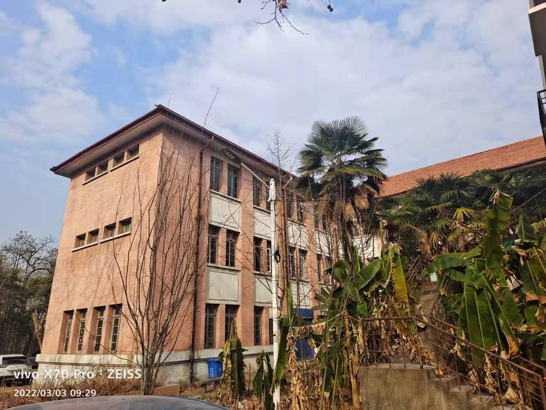 在一个春光明媚的上午,我们终于走近了红房子。武汉科技大学洪山校区现保存完好的红房子主要分布在四个地方:学校中心花园东西两侧的教学楼,操场东侧的老三间、西侧的后勤办公楼和学校二号门三合院。我告诉作家,校区红房子建于1953年,当年武昌钢铁工业学校(后来的武汉钢铁学院)搬迁至此办学时,由苏联专家按照苏联建筑模式援建而成,据考证,是武汉市最早的苏式建筑之一,比青山区著名的红房子还早五年以上。