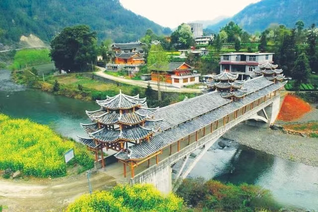 蓝河两岸,幽谷逶迤,逸态横生,一道晴岚入画来;吊桥流水,青石小径,烟火人家,泉落春山绕村郭;迷你步道,风雨廊桥,民宿观光,游人与茶园共舞。