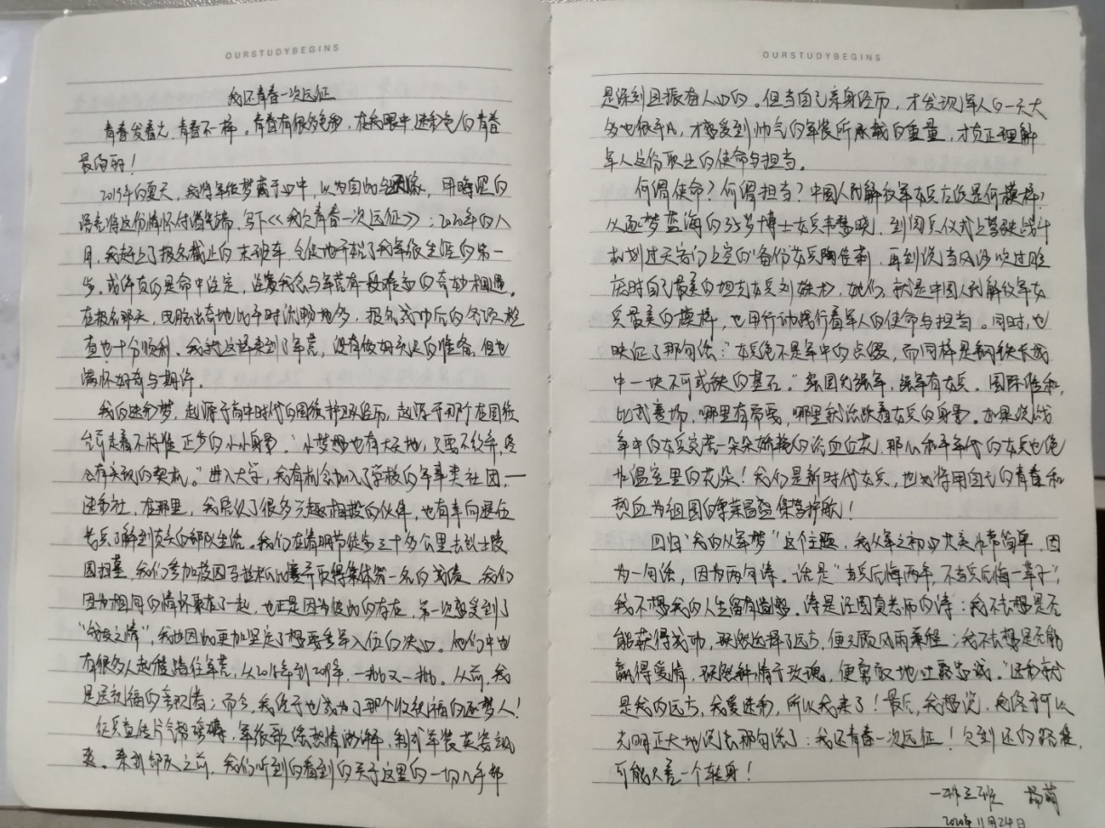“今天是2019年8月22日,今年的女兵征兵报名已经截止17天了,四月份的我以为如今的我应该在为去当兵做准备,而现况是我正百无聊赖地写下这矫情的文字,想必这就是理想与现实的差距。”2019年的夏天,我将军旅梦藏于心中,以为自此与之无缘,用晦涩的语言将这份情怀付诸笔端,写下《我“欠”青春一次远征》。