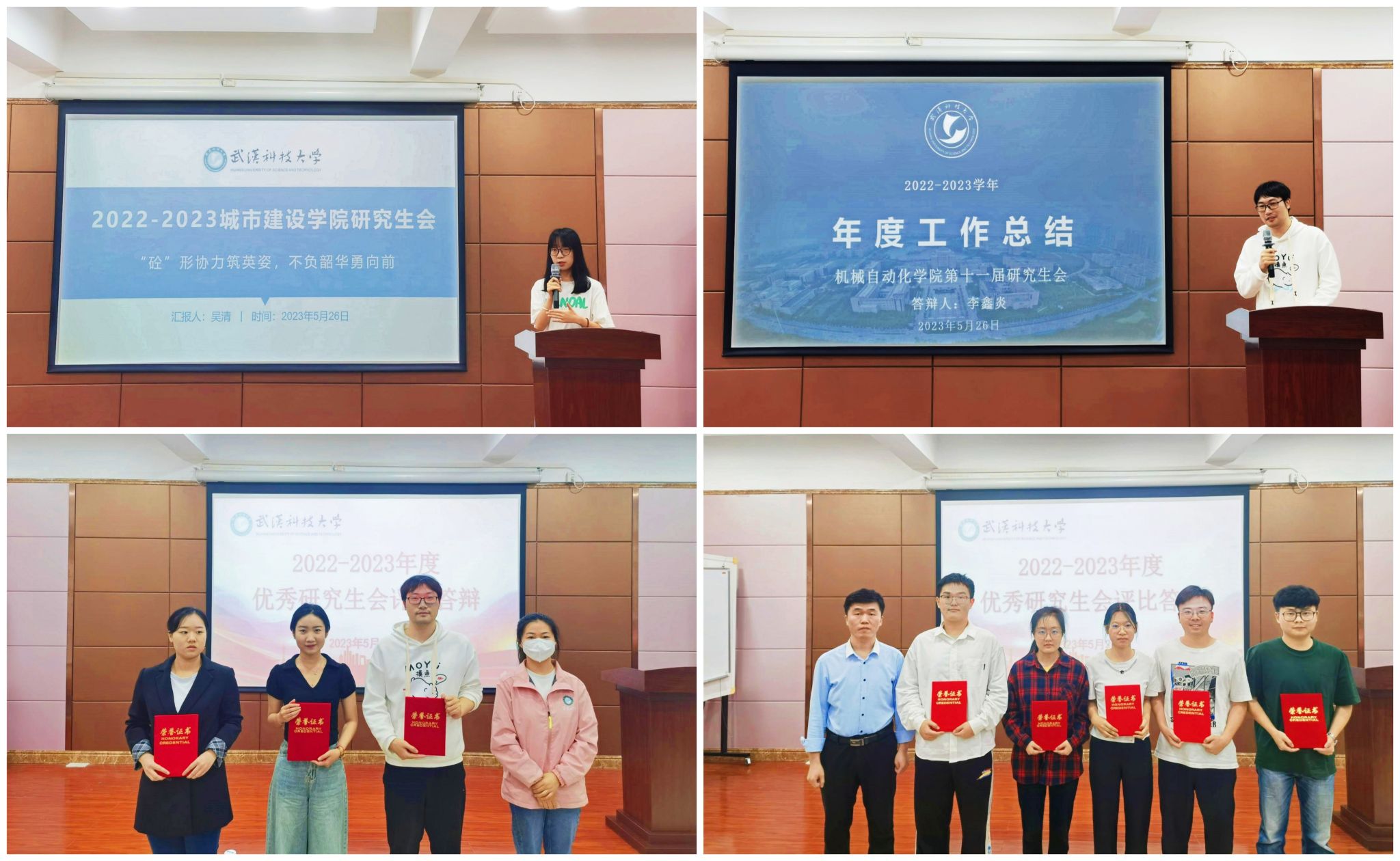 现场答辩评审结束后,结合书面评审环节和线上调研评审环节成绩,城市建设学院研究生会、材料与冶金学院研究生会、理学院研究生会、信息科学与工程学院研究生会及管理学院研究生会获得“优秀研究生会”荣誉称号;汽车与交通工程学院研究生会、机械自动化学院研究生会、艺术与设计学院研究生会获得“优秀研究生会提名奖”称号。