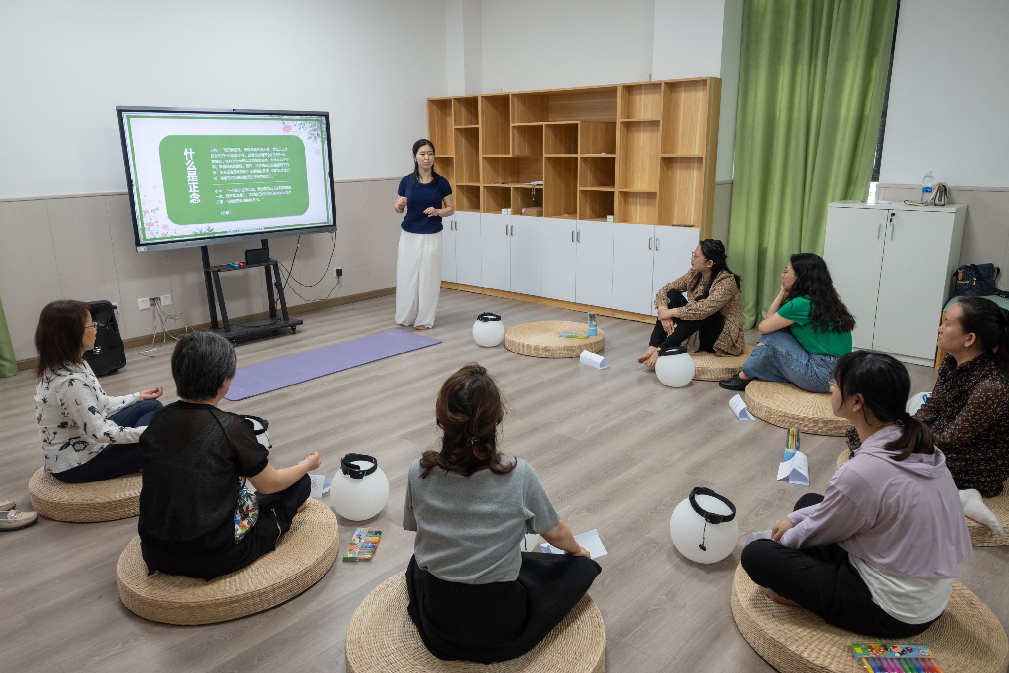 在分享环节,老师们纷纷打开心扉,吐露心声,互相宽慰,分享经验,她们感慨道:“我们应该放慢生活节奏,享受并关注当下的时刻,把正念练习运用到工作和生活中,缓解来自方方面面的压力和焦虑,重新察觉到生活中的美好和愉悦。”