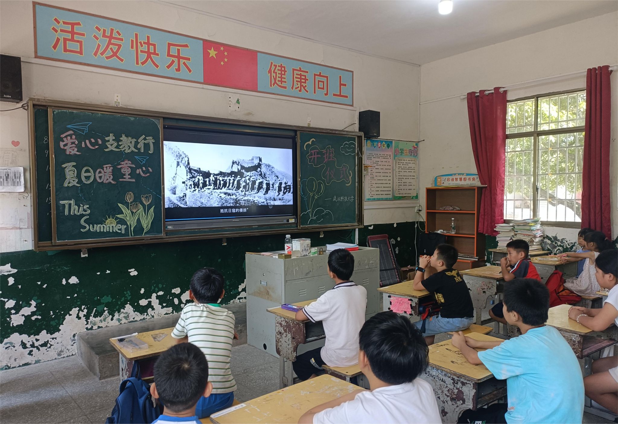 武科大网讯(通讯员江欢 杨钰盟)“86年前的今天,是全体中国人民刻骨铭心的日子。”7月7日,必赢官网“童心同行 伴你成长”暑期社会实践团队第二批志愿者在咸宁大幕乡港背小学开展了爱国主义教育,旨在让该校学生缅怀先烈、勿忘国耻,同时让学生了解祖国的历史,关心祖国的发展,展望祖国的未来。
