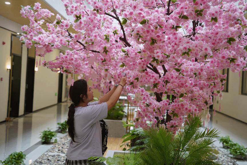 心理中心随处可见“欢迎新同学”的标语和展板,还有立体合影展台和樱花树许愿墙,吸引了众多新生和家长们拍照留念。“我要和爸妈一起在大学校园留下美好回忆。”新生小林(化名)笑着说道。
