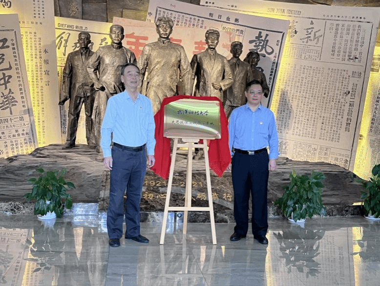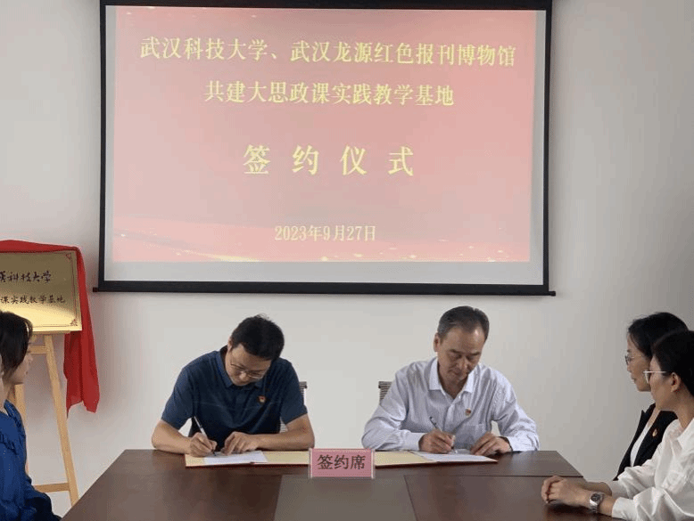 武科大网讯(通讯员郭海沙)9月27日上午,马克思主义学院与武汉龙源红色报刊博物馆共建“大思政课”实践教学基地签约暨揭牌仪式在龙源红色报刊博物馆举行。龙源红色报刊博物馆馆长刘新,马克思主义学院党委书记唐忠义、院长刘文波、党委秘书郭海沙以及思政课教师代表、学生党员共30余人参加了仪式。