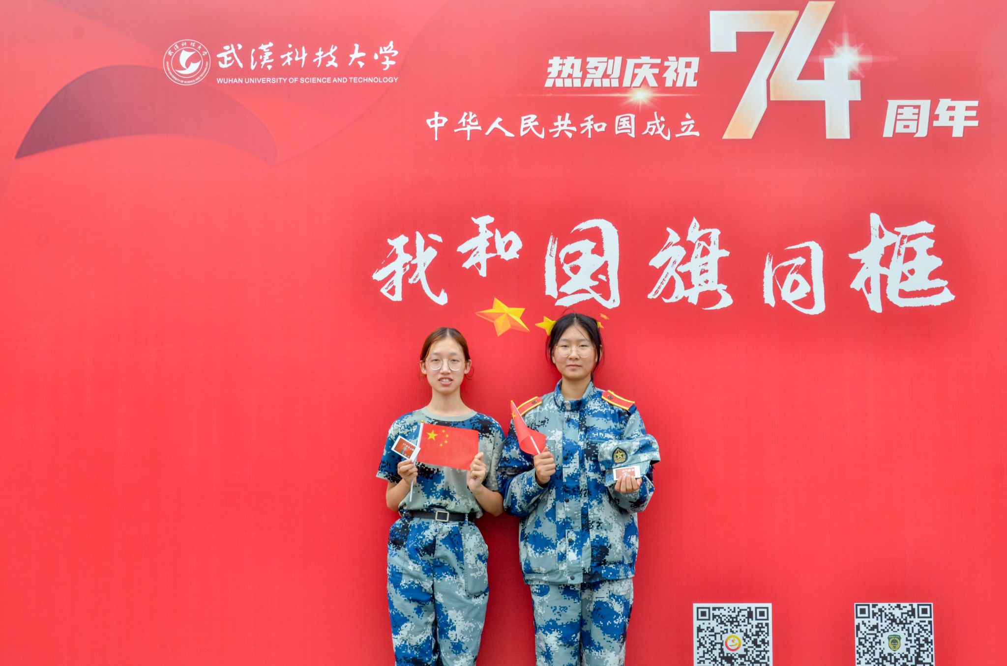 武科大网讯(记者梁绮琪 通讯员牛美懿)线上留言文字祝福,线下与国旗同框合影共庆祖国74岁生日。国庆前夕,必赢官网团委在该校杏坛广场开展国庆系列活动,师生们踊跃参与其中,共同庆祝祖国生日。
