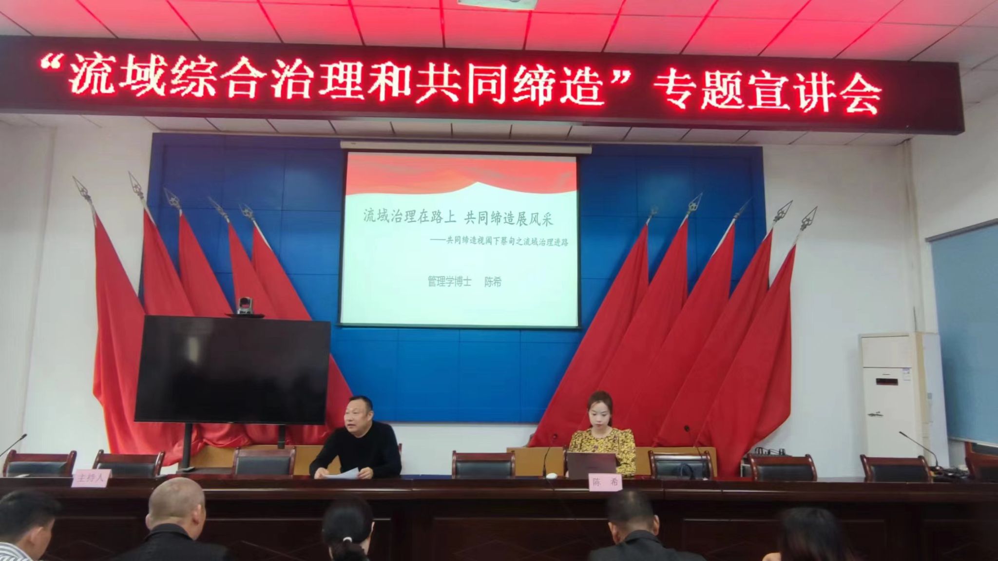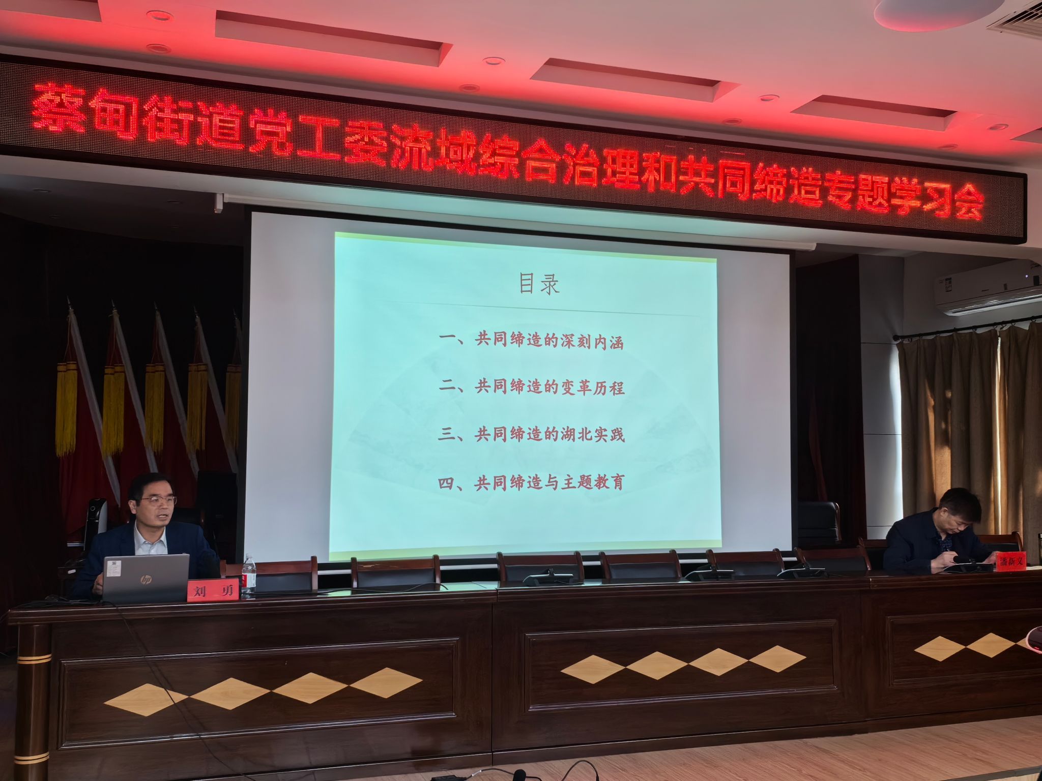 在张湾街道,陈希博士以《流域治理在路上 共同缔造风采》为题,从流域治理与共同缔造的政策要求、共同缔造赋能流域治理已经取得的成绩和共同缔造视阈下蔡甸之流域治理道路等方面进行了系统宣讲和深入阐释。