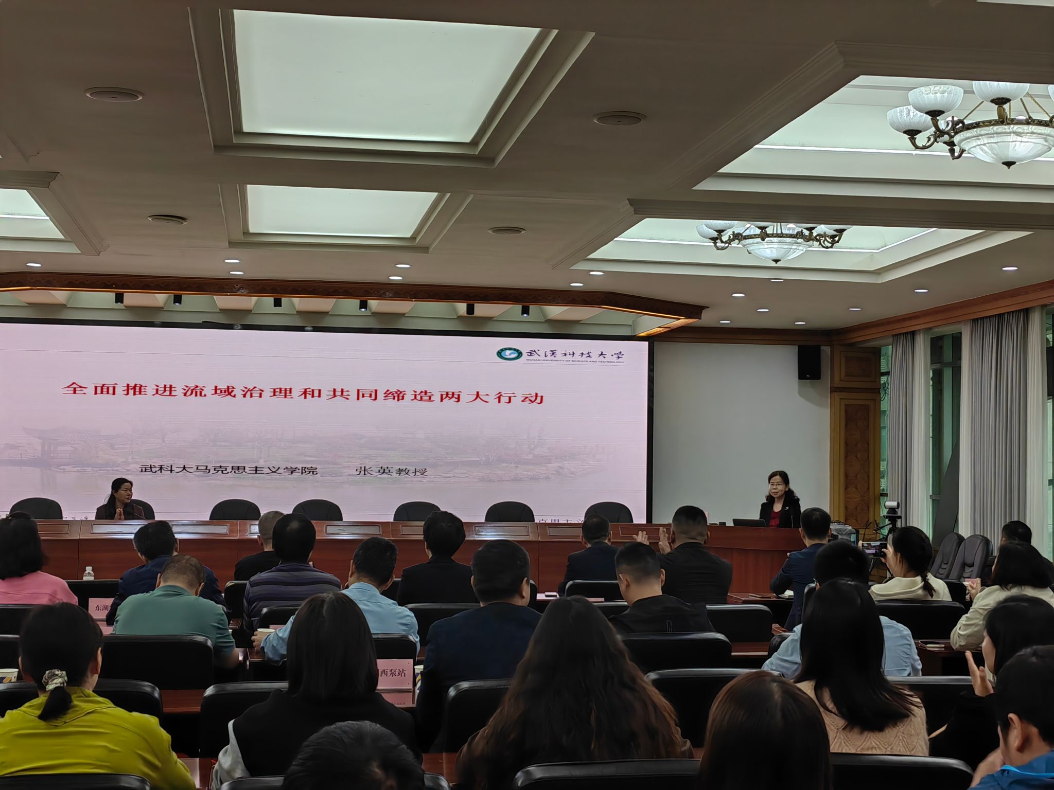 在蔡甸区水务和湖泊局,必赢nn699意识形态安全研究中心主任张英教授以《全面推进流域治理和共同缔造两大行动》为题,聚焦习近平总书记关于湖北工作的重要讲话和湖北建设全国构建新发展格局先行区的务实举措等内容,通过典型案例总结推广福建“流域综合治理木兰溪”、浙江“千万工程”等经验,号召全区广大水务系统干部职工要以贯彻落实区委七届八次全会精神为契机,以共同缔造赋能流域治理,为共同谱写两大行动的武汉华章贡献蔡甸力量。