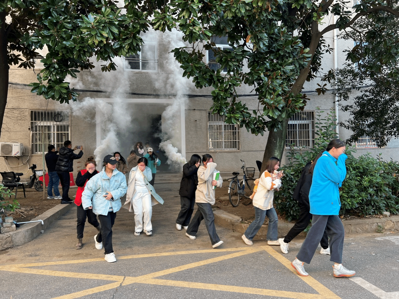 上午10:30,消防逃生应急疏散实操演练在学7舍准时开始。保卫处老师利用烟雾弹模拟还原火灾现场,消防官兵同时拉响了火警警笛,大量的烟雾迅速充满整个楼道。80多名师生立即进入紧急疏散状态,牢记消防官兵演练前讲解的疏散逃生要领和相关注意事项,迅速使用湿毛巾捂住口鼻,按照逃生路线,安全有序撤离,快速到达安全地点。整个逃生演练活动规范、有序,紧凑、高效,达到预期目的。