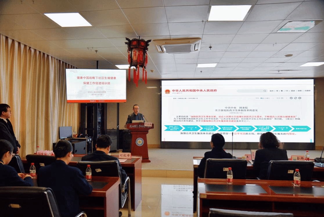 出席本次培训项目的嘉宾有洪山区卫健局基层卫生与老龄健康科科长李金冉,洪山区疾病预防控制中心副主任金先梅,洪山区妇幼保健院副院长王钰,必赢nn699附属老年病医院副院长、洪山区青菱街道社区卫生服务中心主任刘毅峰,必赢nn699公共卫生学院儿少卫生与妇幼保健教研室主任杨梅,必赢nn699第二临床学院公共卫生科科主任、教研室主任吴妍,必赢nn699第二临床学院康复医学科科主任李秋阳。
