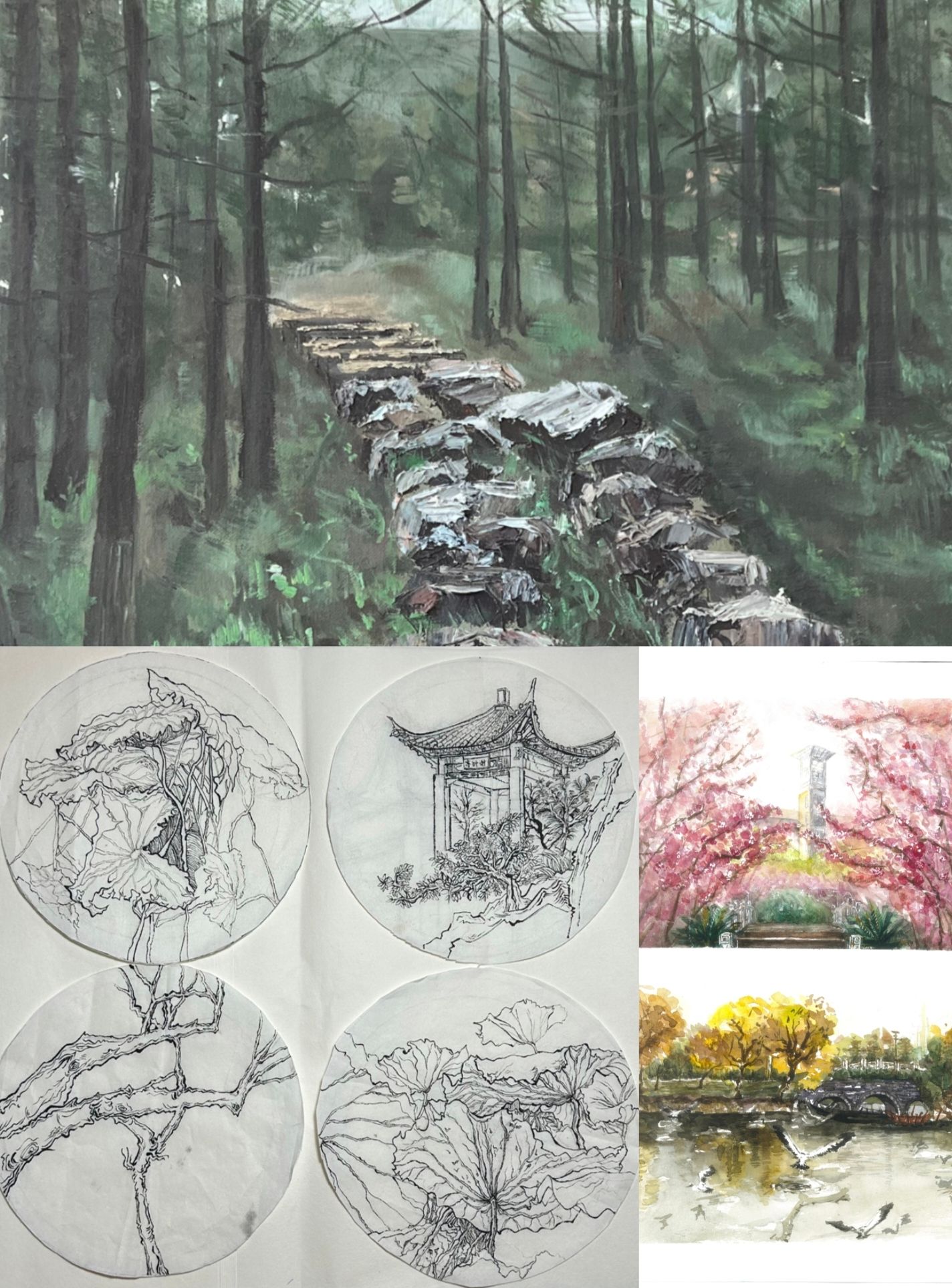 活动负责人人力2201陈蓝薇说道:“本次活动共产生了六个复赛作品,这些作品将会线下展出,希望能调动大家对水墨画的兴趣,也能让大家静下心来看看学校风光。”