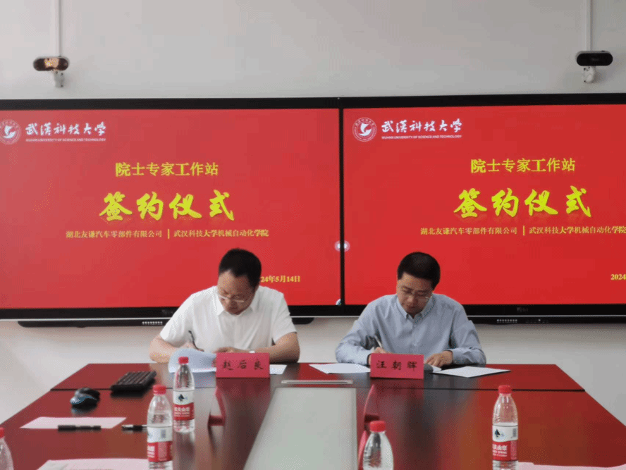 机械自动化学院资深专家高全杰和湖北友谦汽车零部件有限公司总经理赵后良签署了院士专家工作站合作协议。