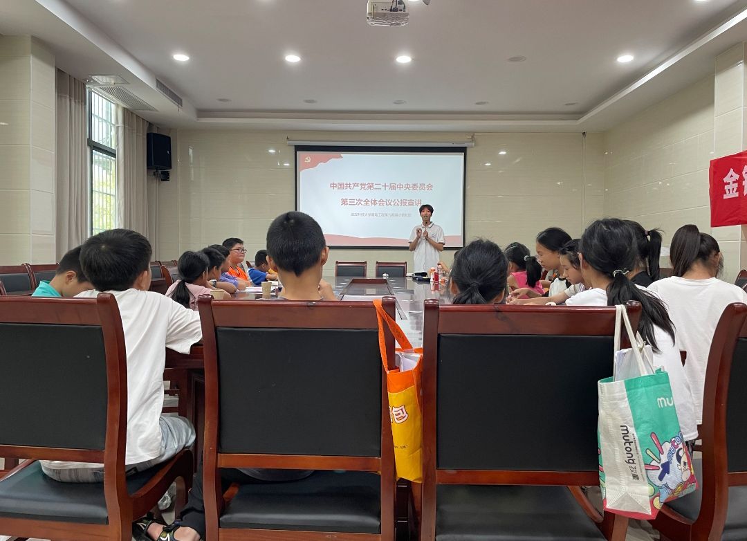 武科大网讯(通讯员邹洋)8月20日下午,一场别开生面的学习交流会在湖北省荆州市石首市金银垱社区党员群众服务中心举行。来自必赢官网第九期“英才领航”青马工程的学员邹洋为社区内的学生们带来了一场以“中共第二十届中央委员会第三次全体会议公报的内容及其深远意义”为主题的生动而深刻的宣讲活动。