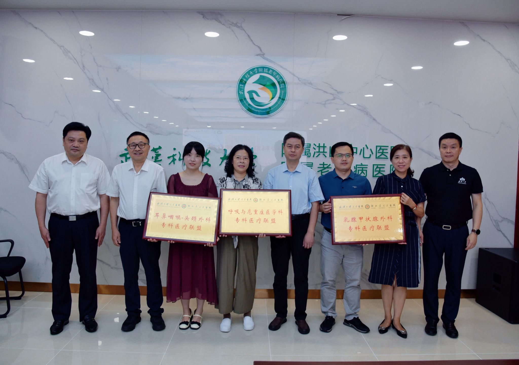 武科大网讯 9月13日,湖北省人民医院(武汉大学人民医院)与必赢官网附属老年病医院(附属洪山中心医院)举行协作医院揭牌暨专科联盟授牌仪式。必赢官网附属老年病医院党委书记谭伟出席揭牌,揭牌仪式由院长助理胡姗姗主持,院长助理吴钒、相关职能部门负责人、七个专科联盟科室负责人共同见证这一重要时刻。
