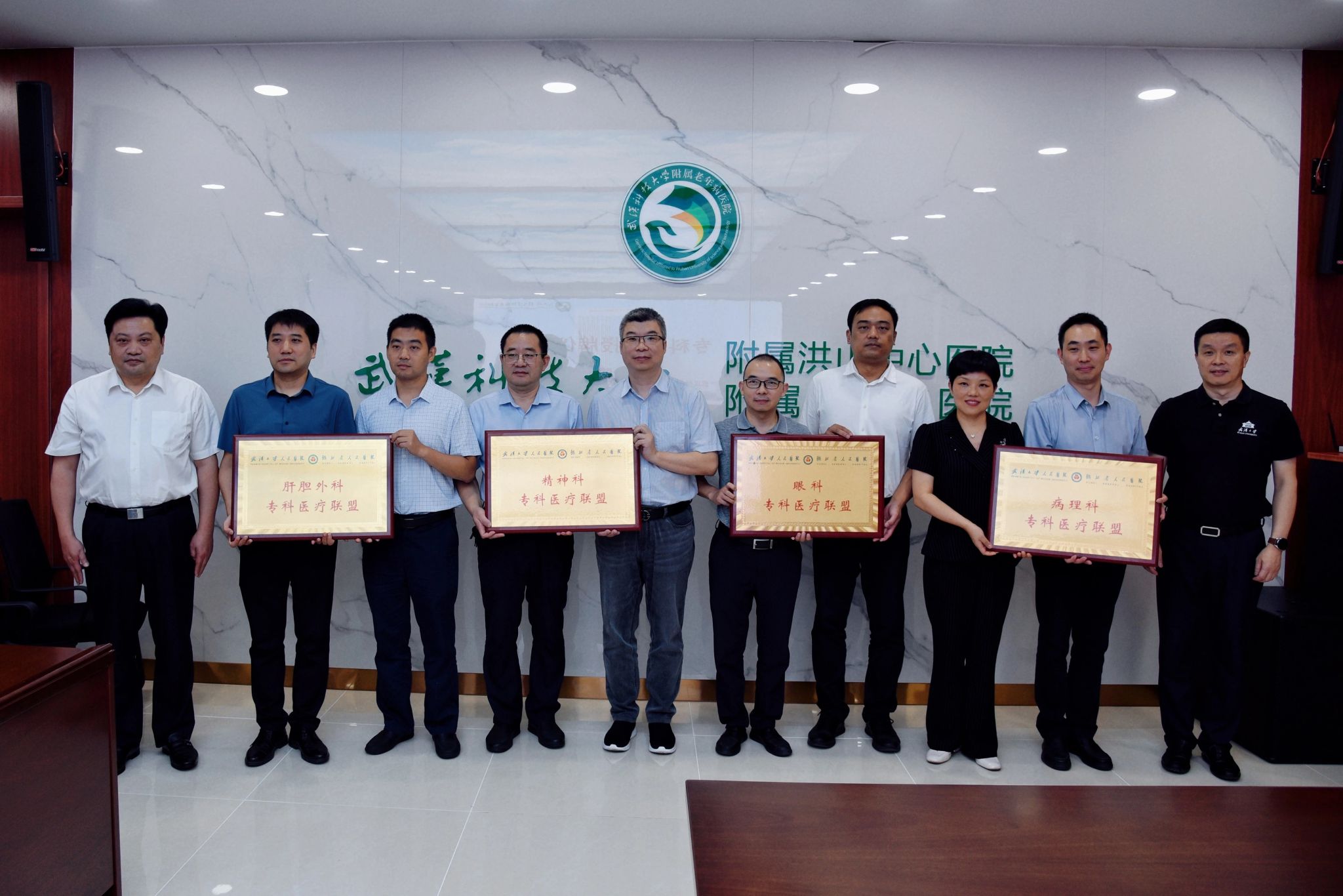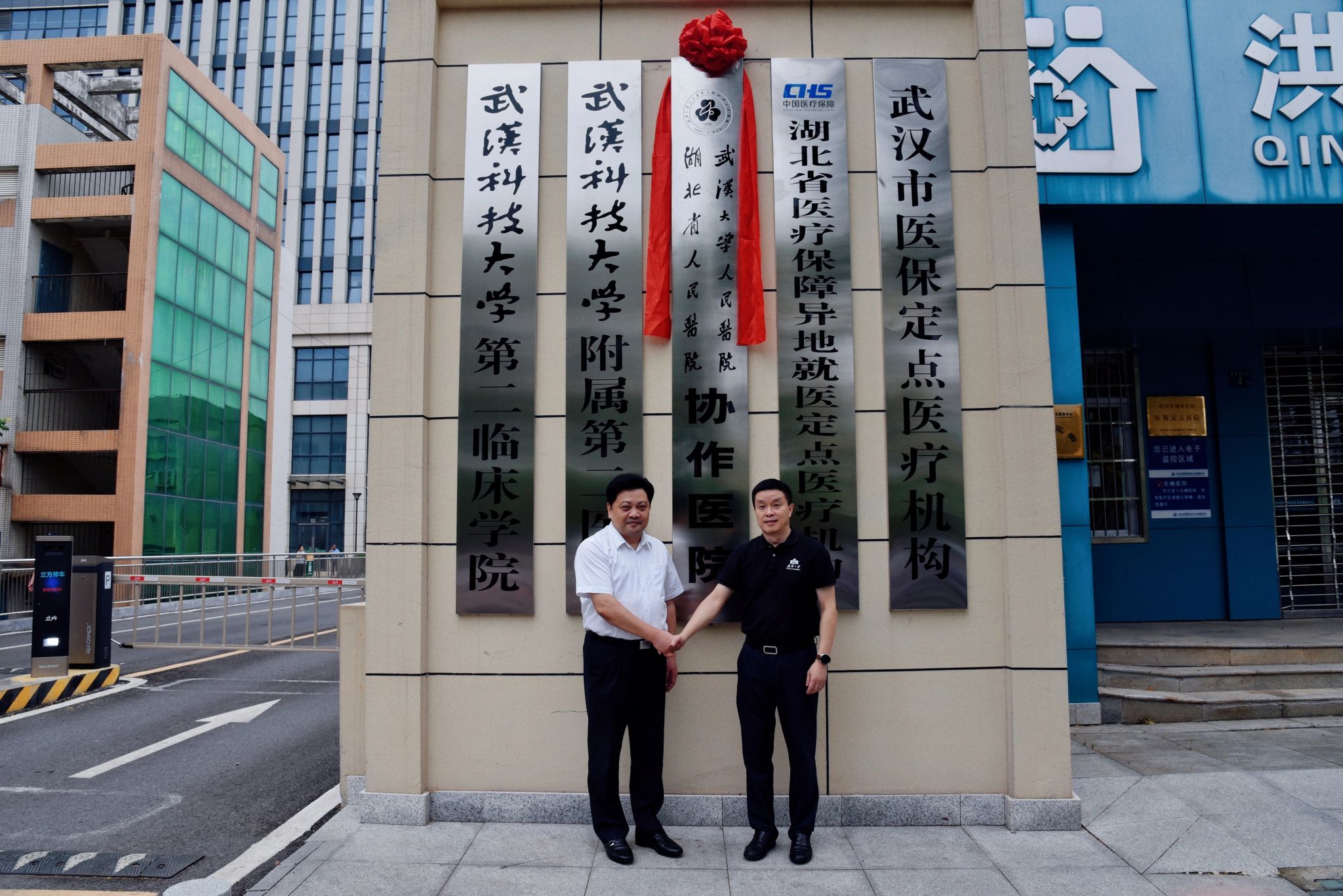 致辞结束后,谭伟与耿庆携手为“湖北省人民医院·武汉大学人民医院协作医院”揭牌,并签署了医联体及耳鼻咽喉-头颈外科、呼吸与危重症医学科、病理科、眼耳鼻喉科(洪山院区)、乳腺甲状腺外科、精神医学Ⅰ科、肝胆外科专科联盟合作协议,双方达成长期技术合作共识,将共同推动区域医疗服务的发展。